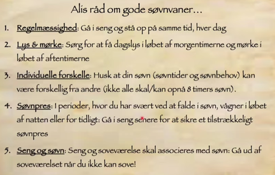 Her er afslutningsvis Alis gode råd om søvnvaner.