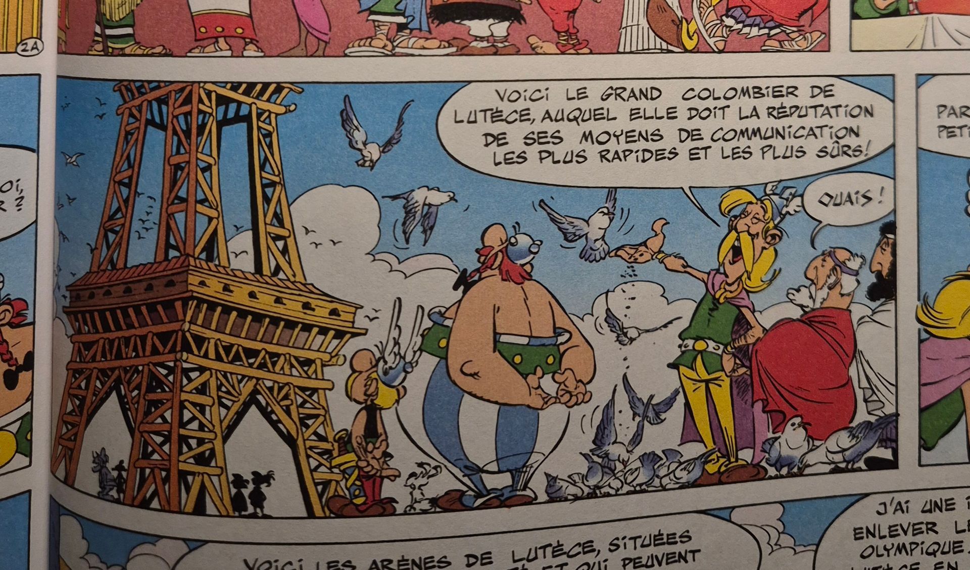 En anden julegave Astérix et le rentrée gauloise (René Goscinny & Albert Uderzo, 2003), bind 32 af de franske albums, læste jeg færdig i dag. Albummet samler 14 korte Astérix-historier, oprindeligt udgivet enkeltvis i det franske Pilote, som blev grundlagt i af bl.a. René Goscinny og fik enorm betydning for fransk populærkultur. Historierne er korte, humoristiske og ofte eksperimenterende, fordi de blev lavet til magasinformat og ikke som fulde album. Man kan fx læse om Astérix og Obélix fødsel; en historie fra 1986 som indgik i PR-kampagnen for at få OL 1992 til Paris (det lykkes som bekendt ikke, Barcelona fik værtskabet) hvor en konstruktion med forbløffende lighed med Eiffeltårnet er et kæmpedueslag for brevduer, som skal sikre hurtig og sikker kommunikation; og den skønne historie med Obelix’ efterkommer i 7. led Obelisc’h.